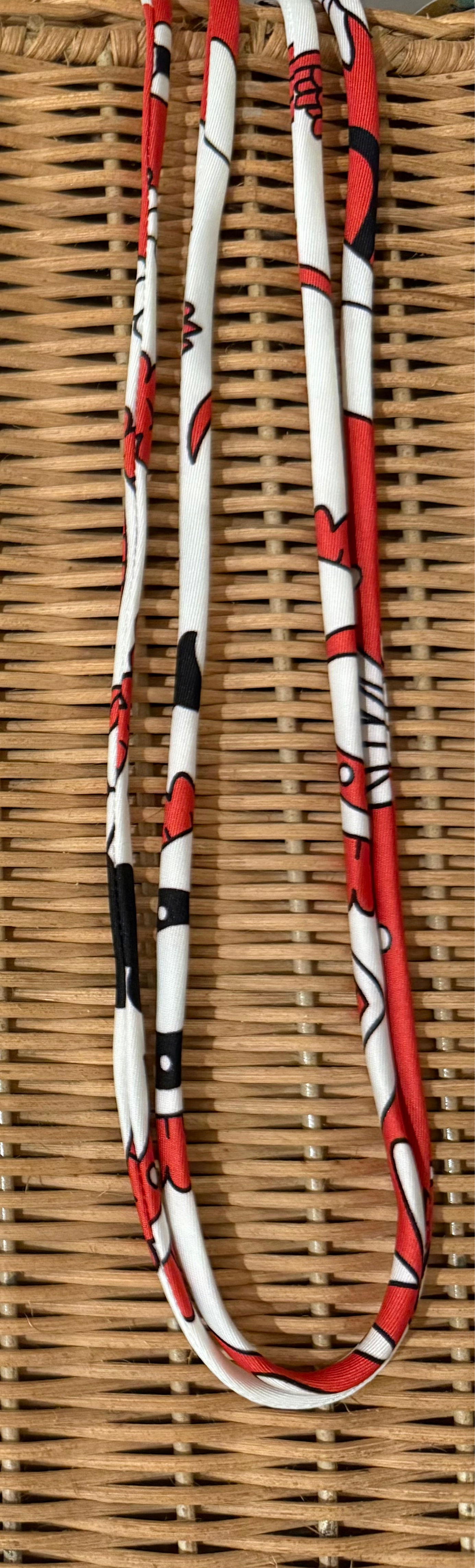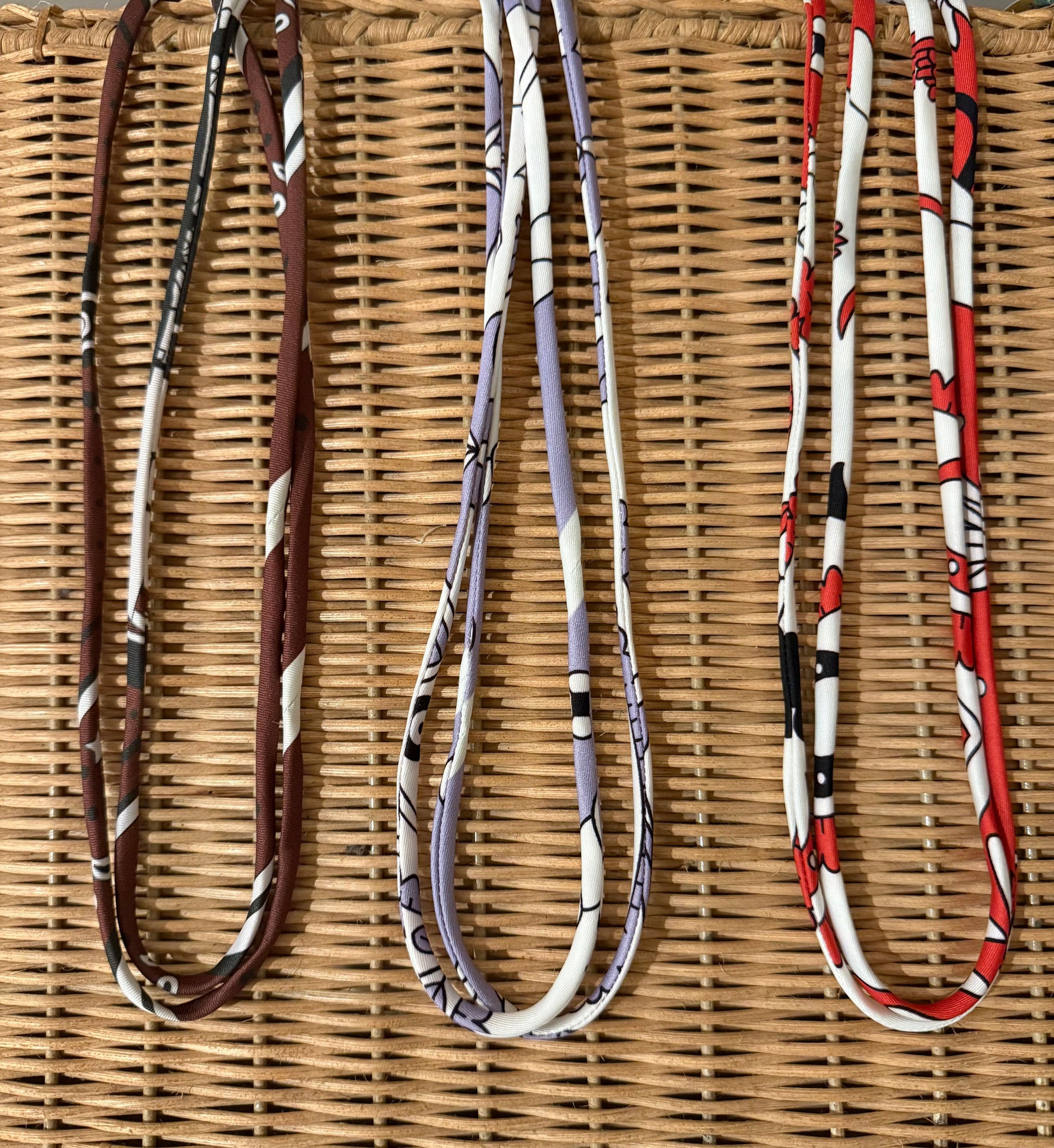 Each silk tie is handmade and one of a kind. The image represents the pattern and colors, but yours will not be identical — no one else will have your exact tie necklace!